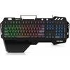 Ενσύρματο gaming πληκτρολόγιο με RGB LED οπίσθιο φωτισμό, μαύρη επιφάνεια από αλουμίνιο, μεγάλο palm rest και βάση στήριξης για το κινητό.