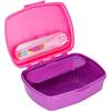 Παιδικό, πλαστικό σετ φαγητού της εταιρείας Stor σε γαλάζιο κόκκινο χρώμα. Είναι κατάλληλο για την αποθήκευση και μεταφορά ενός πλήρους γεύματος στο σχολείο, στο πάρκο αλλά και στις σχολικές εκδρομές. Διαθέτει κουτάλι και πιρούνι.