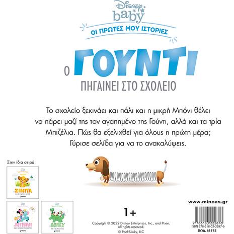 Το σχολείο ξεκινάει και πάλι και η μικρή Μπόνι θέλει να πάρει μαζί της τον αγαπημένο της Γούντι, αλλά και τα τρία Μπιζέλια. Πώς θα εξελιχθεί για όλους η πρώτη μέρα; Γύρισε σελίδα για να το ανακαλύψεις.