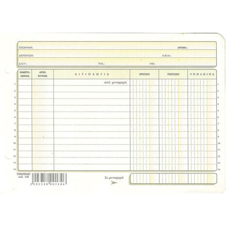 Καρτέλα λογιστική 3στήλη οριζόντια 134 (1 φύλλο)