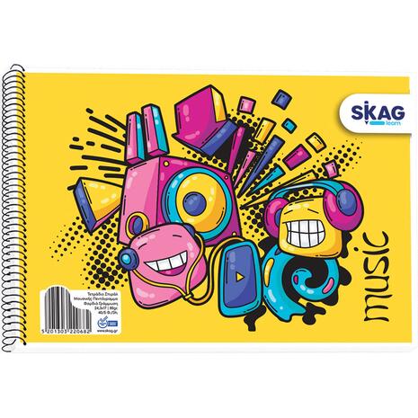 Τετράδιο Skag Σπιράλ A4 Μουσικής 17x25 Πλάγιο (Φαρδιά Γράμμωση) 40 Φύλλων (Χάρτινο Εξώφυλλο)