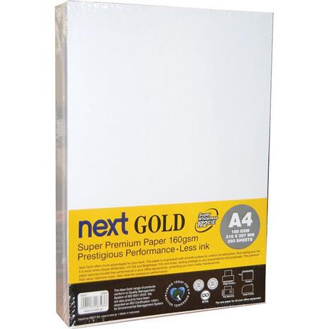 Next Gold φωτoαντιγραφικό χαρτί Α4 160γρ. Κορυφαίας ποιότητας και υψηλής λευκότητας. Super Whiteness 172 CIE and Brightness 100. Κάθε δεσμίδα περιέχει 250 φύλλα.